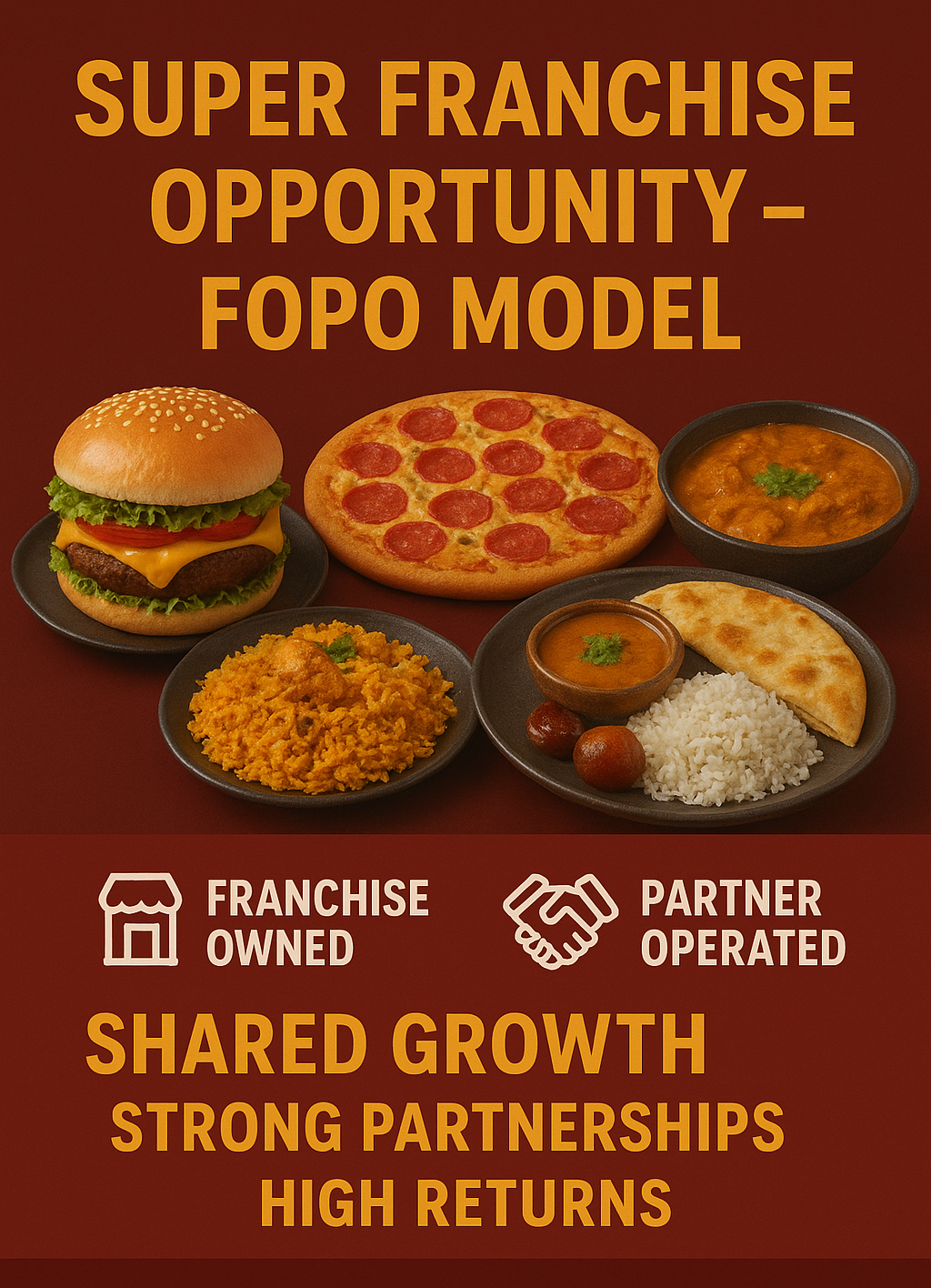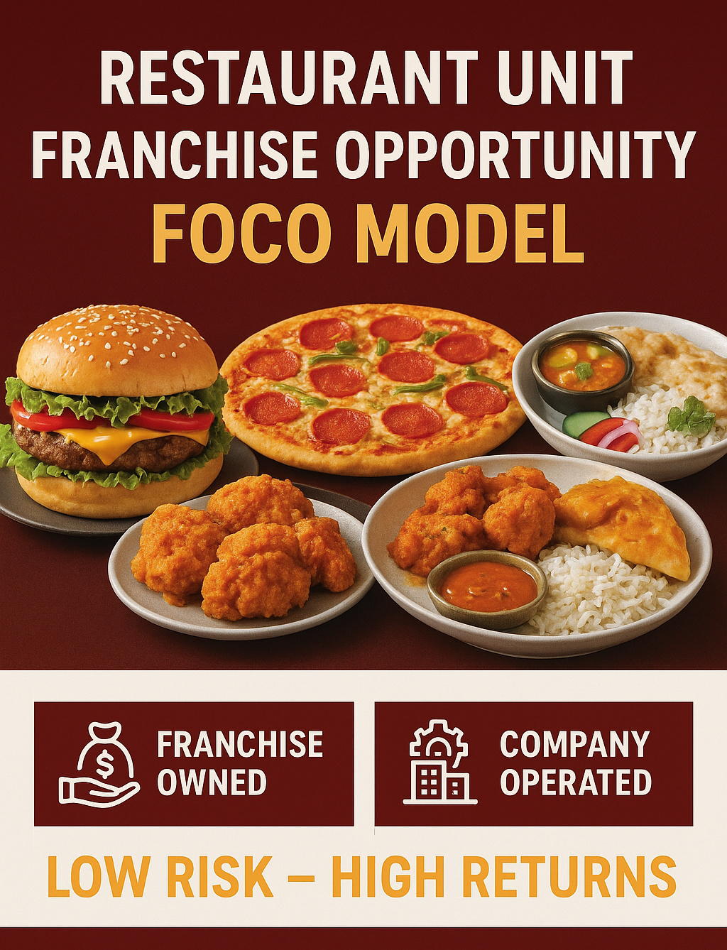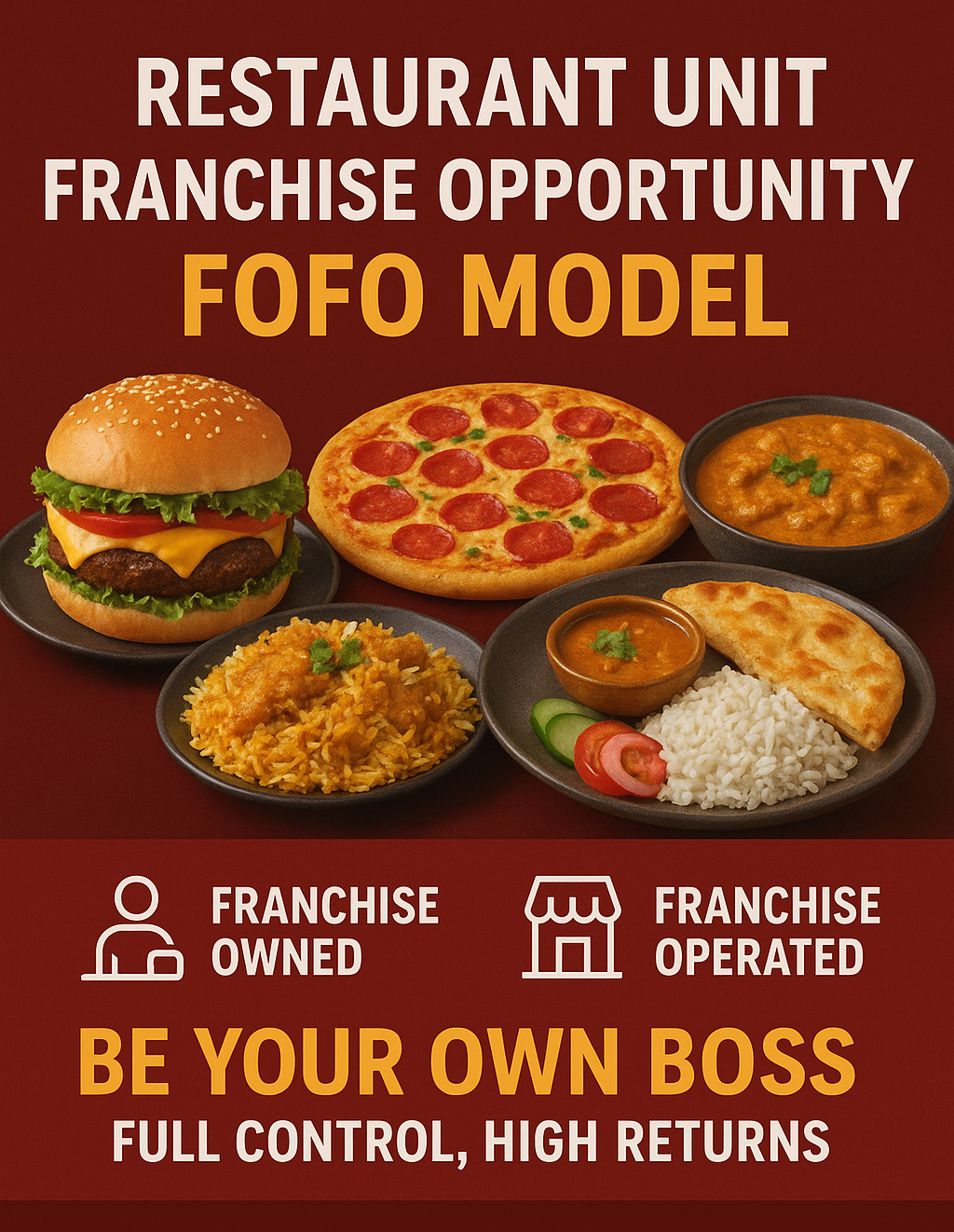 In future we proudly present 20+popular brands across India in top cities providing Indian, Chinese and multi-cuisine options. Our franchise options Unit and super are based on the FOFO, FOCO and FOPO concepts. The Unit franchise offers ownership with 21 sub-brands nationwide .